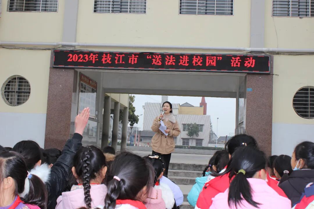 如何让乡亲们也爱听?一次,窗外飘来“哼哼呀呀”的拍唱声——是问安“非遗”楠管!灵感瞬间闪现:何不让法治搭上非遗的快车?几经努力,“非遗法治文化基地”在问安小学落地生根。后来,在枝江市“12·4”活动现场,孩子们表演的楠管节目《说宪法》,赢得满堂喝彩!