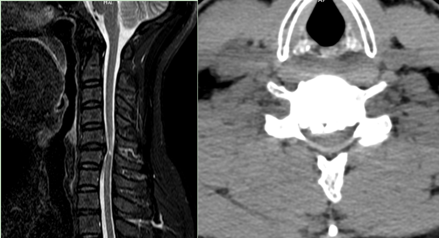 40岁的吴先生(化名),因长期四肢麻木、走路踩棉花感、双手精细动作障碍入院,近一个月症状急剧加重。影像学检查显示:第5、6颈椎间隙重度狭窄,合并椎间盘及后纵韧带重度钙化,脊髓被挤压得“卡到极限”,随时有瘫痪加重的风险。吴先生怀着对瘫痪的恐惧多方求医,最终慕名来到宜昌市中心人民医院。