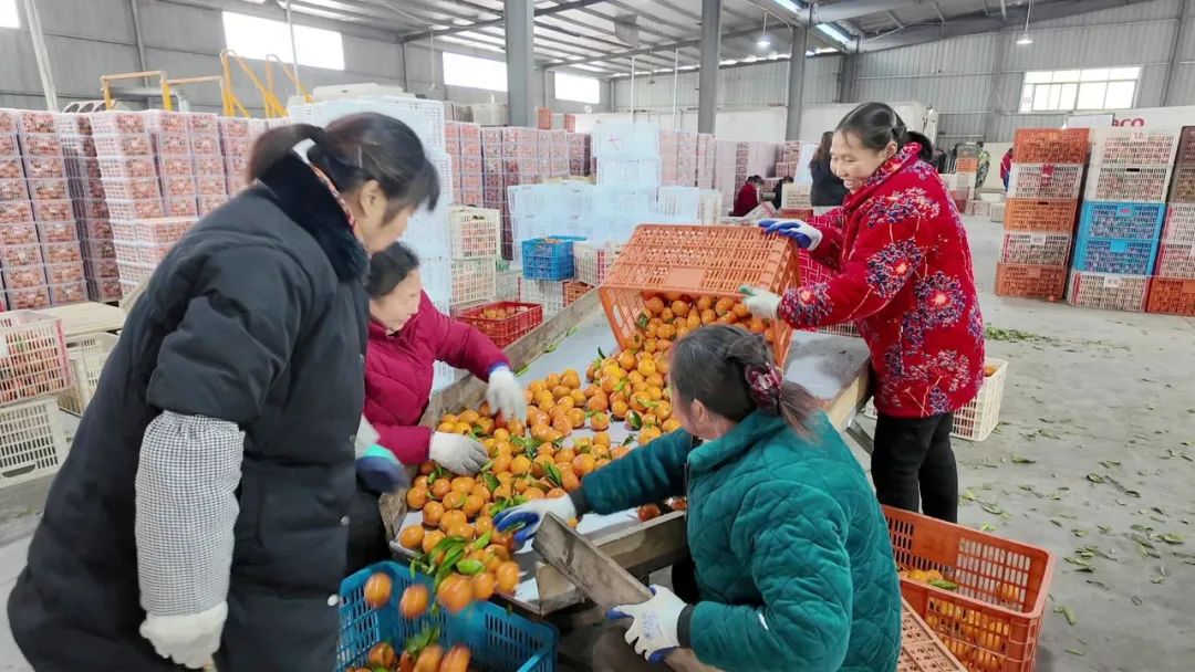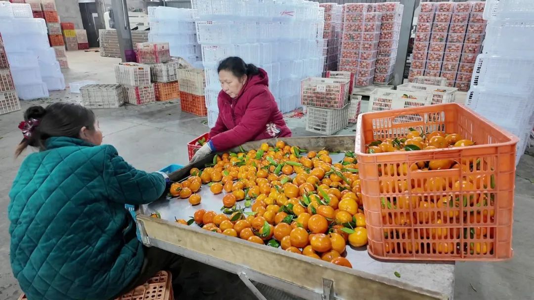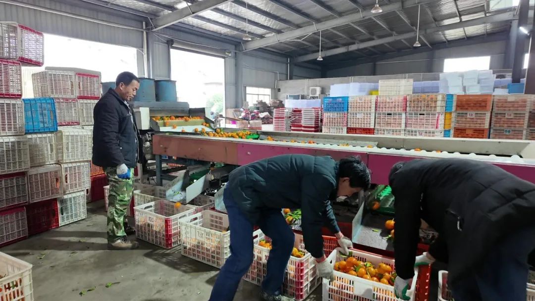 走进合作社的生产车间,自动化流水线正有条不紊地运转着,一颗颗色泽鲜亮、果形饱满的柑橘,沿着轨道缓缓输送。工人们站在传送带旁,严格按照果实大小、表皮色泽以及有无瑕疵等细致标准,对柑橘进行逐一筛选。在打包区,工作人员将分拣好的柑橘装入塑料箱中,扣紧箱盖、贴上标签,一系列动作一气呵成,不多时,一箱箱打包好的柑橘整齐地摆放起来。