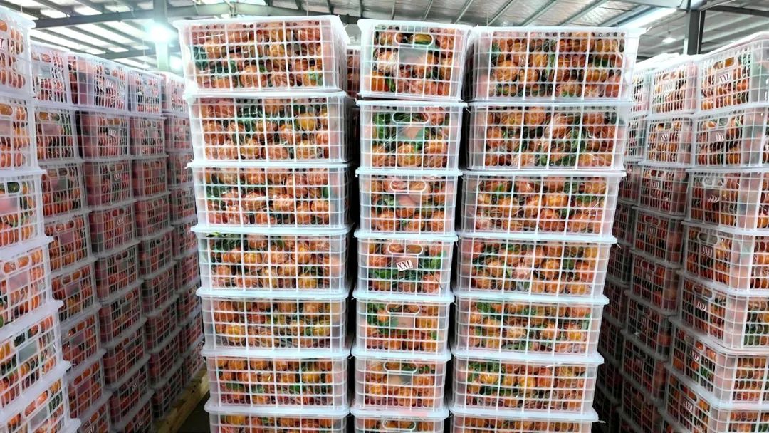 车间内,一筐筐包装精美的橘子整齐排列,等待着被运往车上;车间外,货车早已排起了长队,只待装满柑橘后,便承载着枝江柑橘的甜蜜使命,奔赴海外市场。